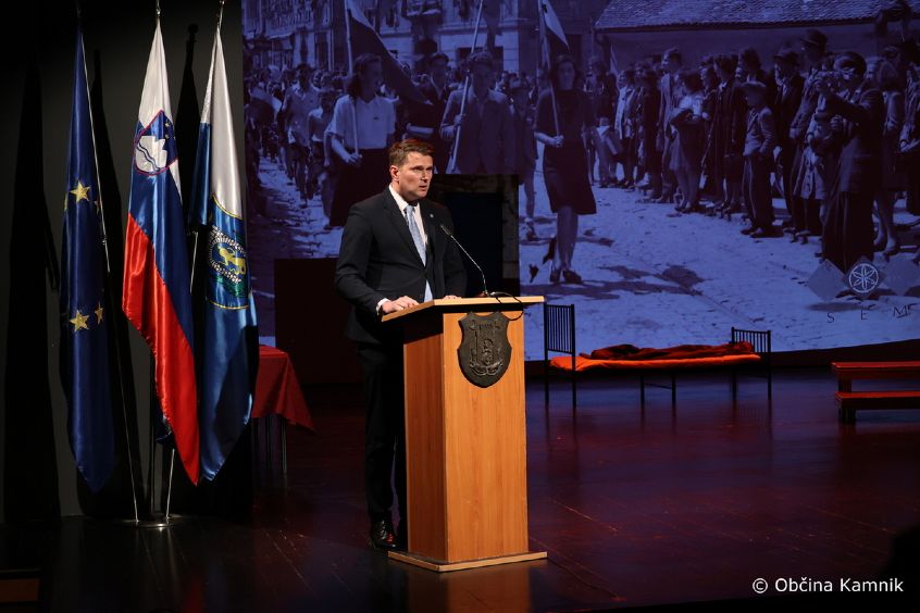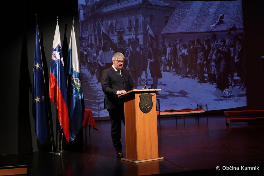 Osrednji govornik, minister Boštjan Poklukar, je podrobno orisal zgodovinske dogodke 2. svetovne vojne, izpostavil sodelovanje zavezniških sil in se poklonil vlogi slovenskih borcev, med njimi tudi kamniškega rojaka generala Rudolfa Maistra. Dotaknil se je tudi prelomnega obdobja osamosvojitve leta 1991, kjer so pomembno vlogo odigrali pripadniki milice in Teritorialne obrambe, ter poudaril, da so vse te zgodovinske etape pripeljale do današnje samostojne Slovenije, članice Evropske unije.